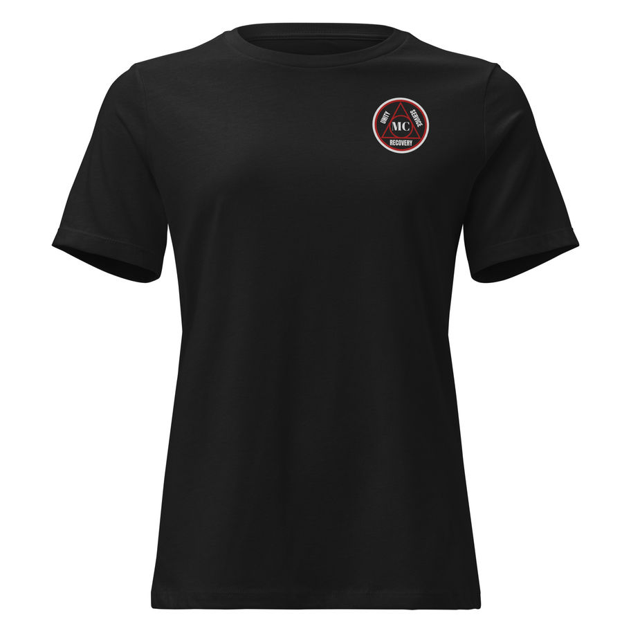 The High on Clarity women’s tee brings balance and backbone — with a skeletal figure raising a cup to self-mastery, wrapped in red text and raw intention. It’s more than just sober — it’s sacred.