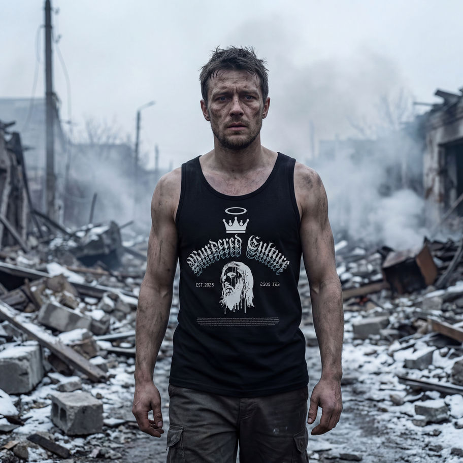 The Doctrine tank drops the sleeves but keeps the crusader energy — perfect for those fighting their battles in the heat. It's stripped down but still screams warpath.